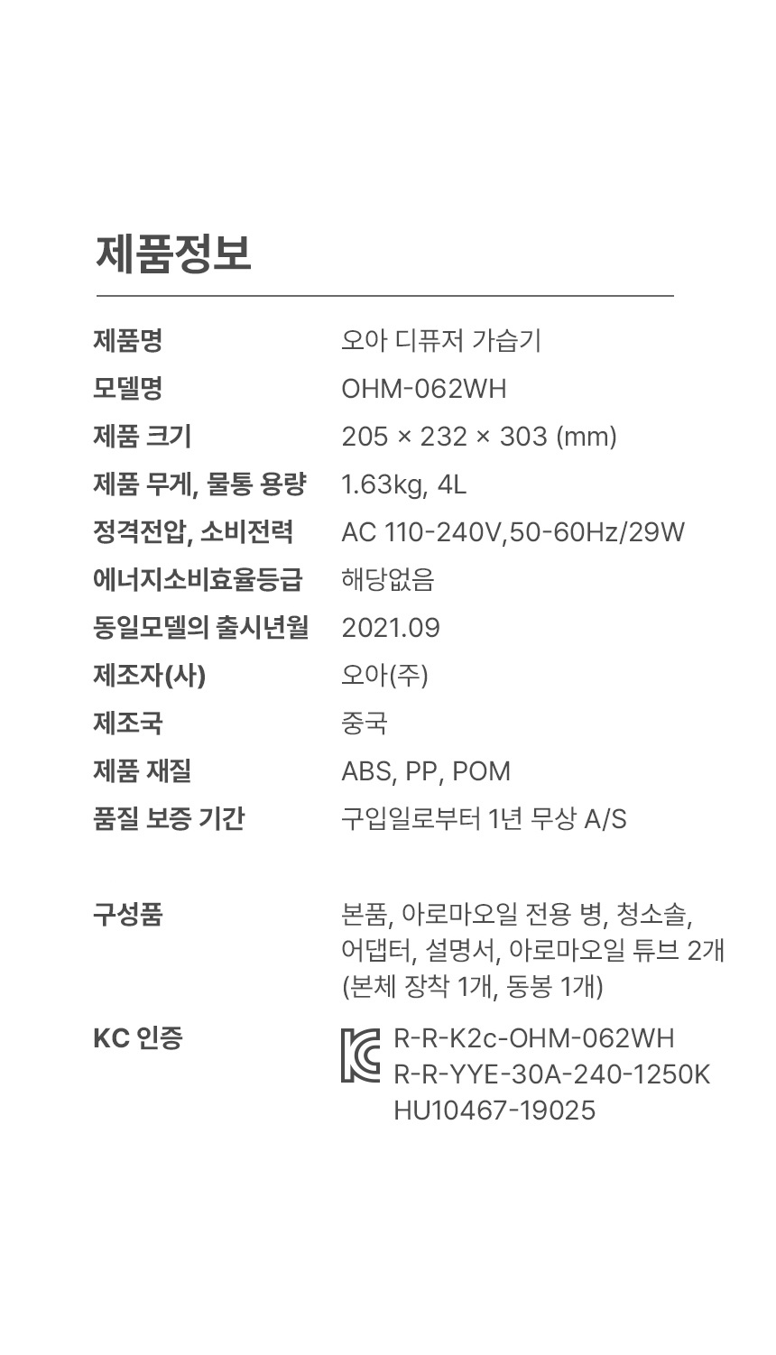 º»Ç°, ¾Æ·Î¾Æ¿ÀÀÏ Àü¿ëº´, û¼Ò¼Ö, ¾î´ðÅÍ, ¼³¸í¼, ¾Æ·Î¸¶¿ÀÀÏ Æ©ºê 2°³(º»Ã¼ ÀåÂø 1°³, µ¿ºÀ 1°³), ¾Æ·Î¸¶¿ÀÀÏ º°µµ ±¸¸Å»çÇ× |